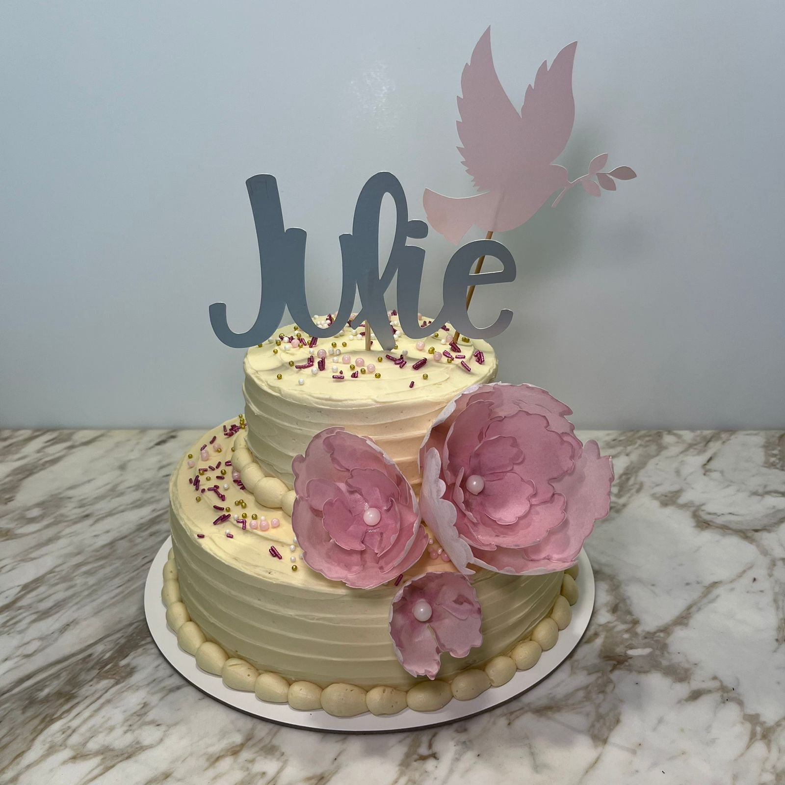 Pastel Bautizo Paloma y Flores
